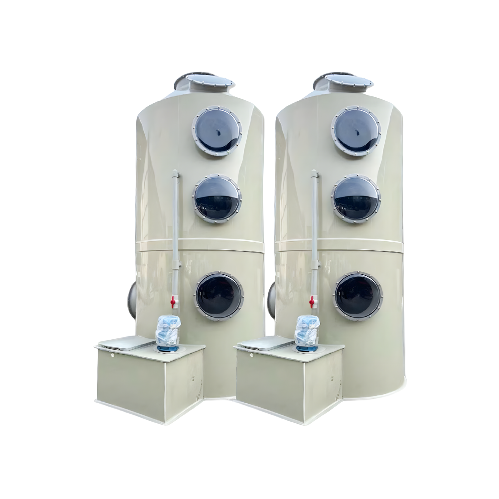 An environmental protection device widely used for industrial waste gas treatment. Polluted gas is introduced into the tower, and absorbent liquid is sprayed downwards through nozzles, forming dense droplets or a liquid film. When the waste gas comes into contact with the droplets in counter-current or co-current flow, the pollutants are absorbed by the liquid or undergo a chemical reaction, thereby achieving purification.